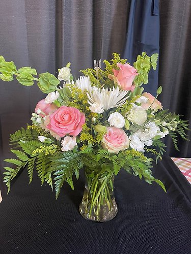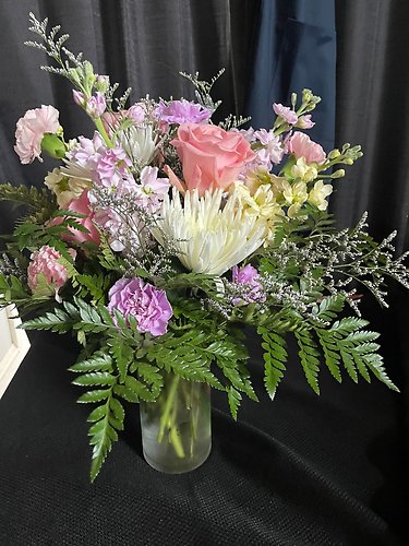 This is our medium sized bubble vase arrangement. Flower selection may vary.